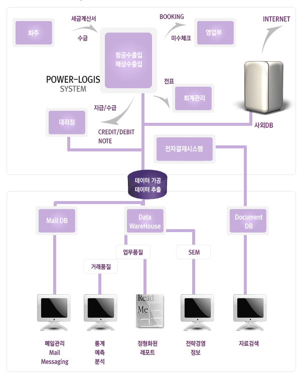 복합운송업무 솔루션 POWER-LOGIS는 사용자인터페이스 위주의 사용이